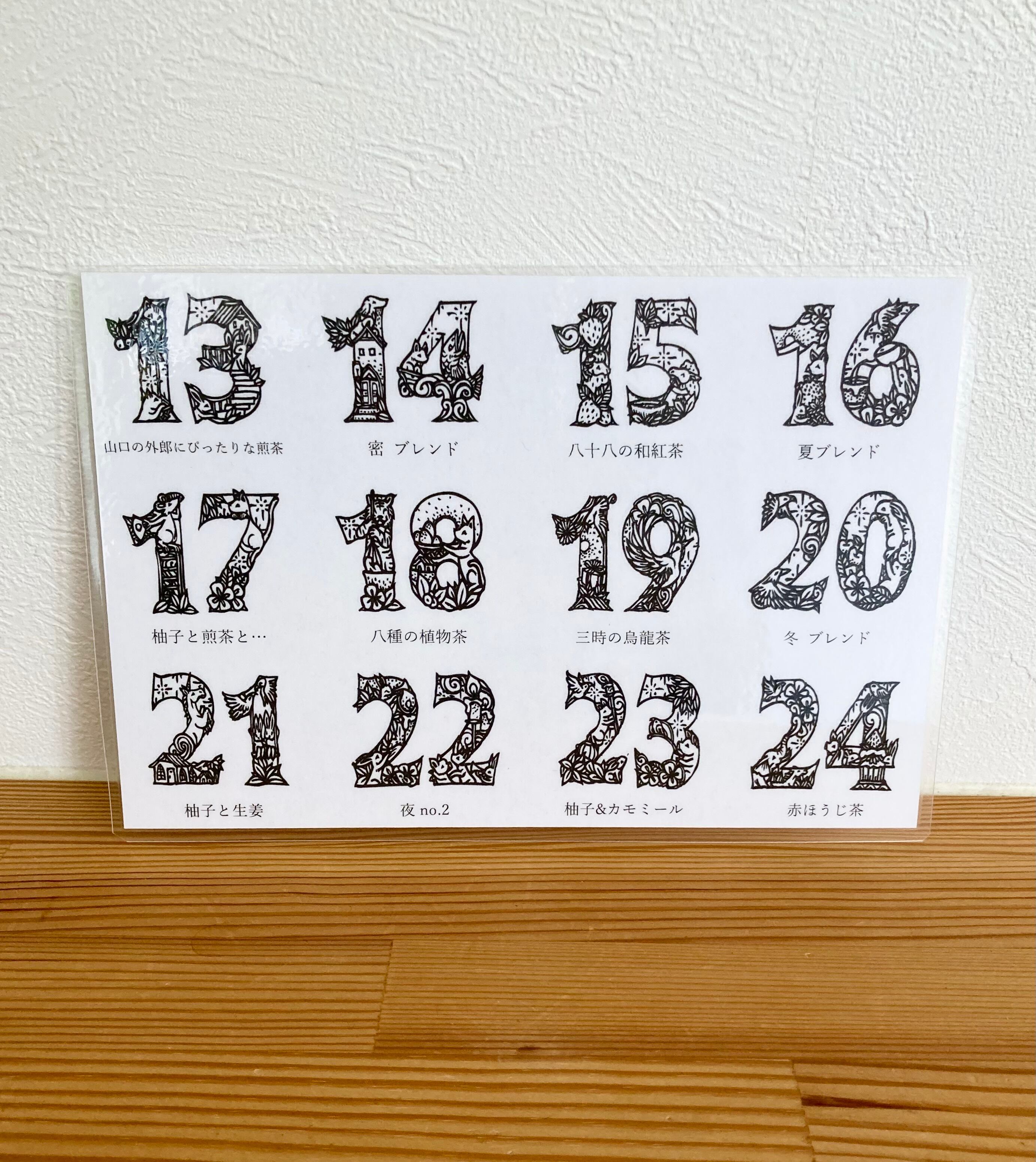 毎日1杯ずつお茶を飲みながらクリスマス当日を迎えていただけますと幸いです。(12/1から24日間をカウントダウン)
